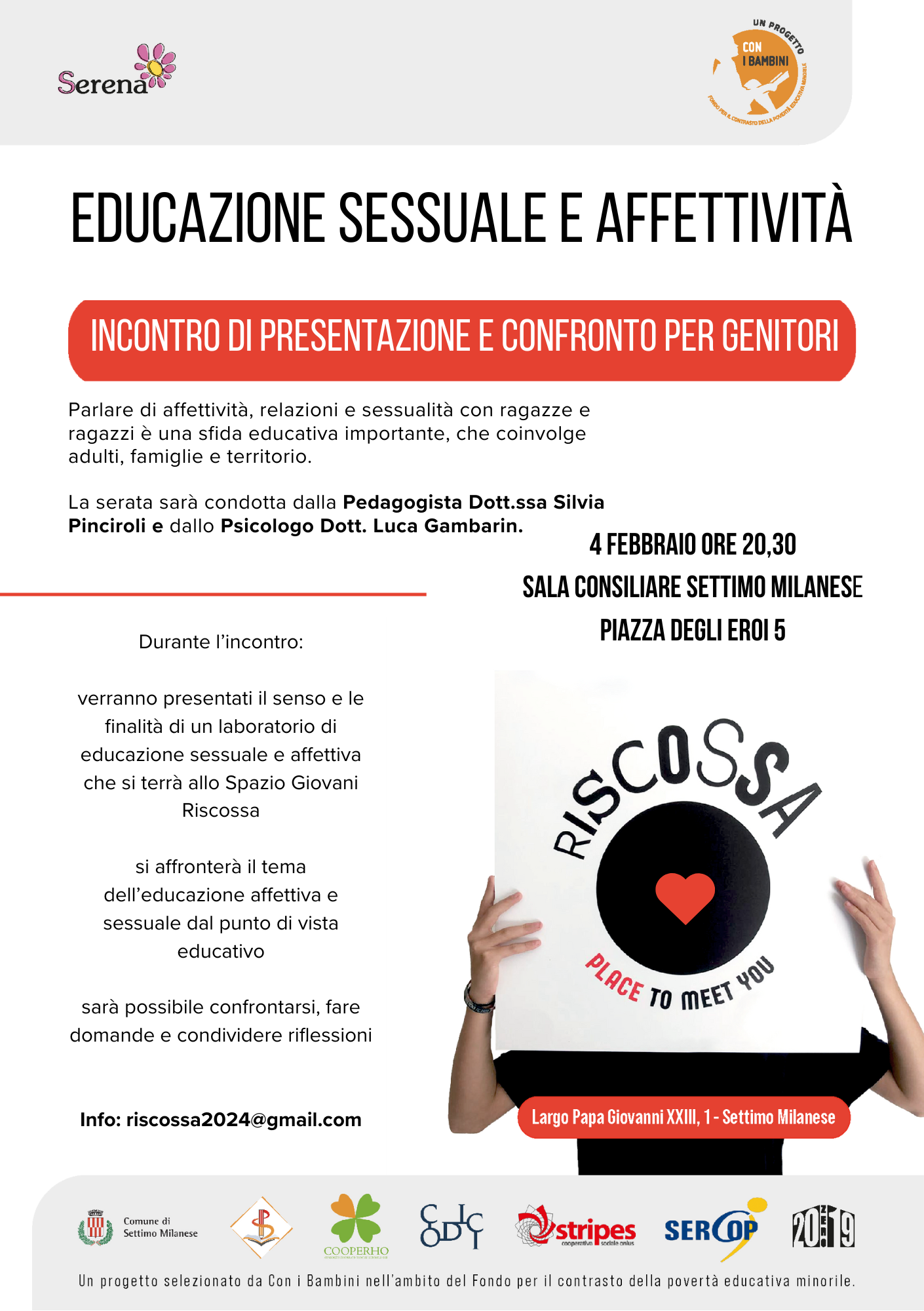 Incontro di presentazione e confronto per genitori su EDUCAZIONE SESSUALE E AFFETTIVITA’ insieme alla pedagogista SILVIA PINCIROLI e lo psicologo LUCA GAMBARIN.
